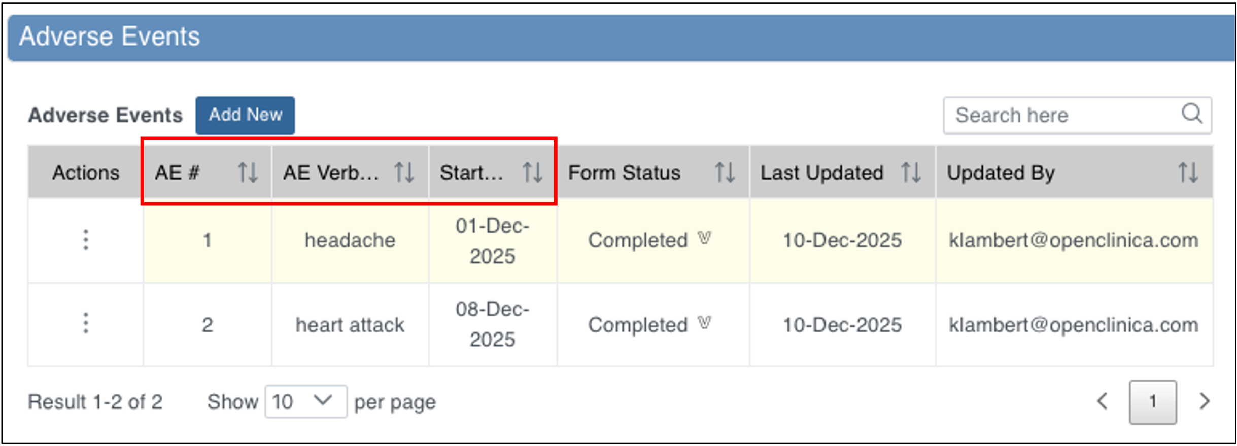 - Clicking the icon highlighted in the Actions column above will access the page for the CRF.