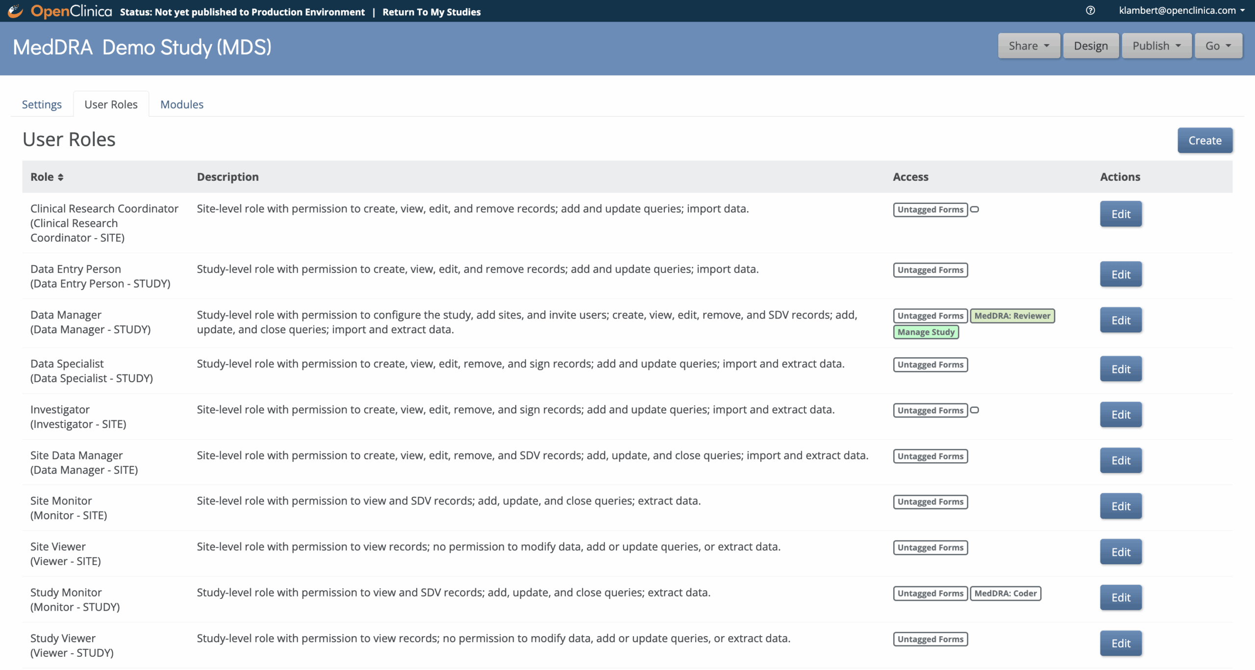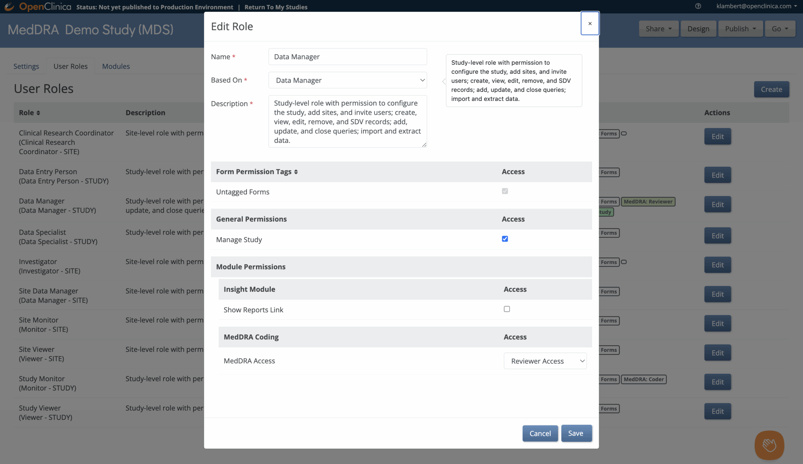 MedDRA User Role Permissions in OpenClinica